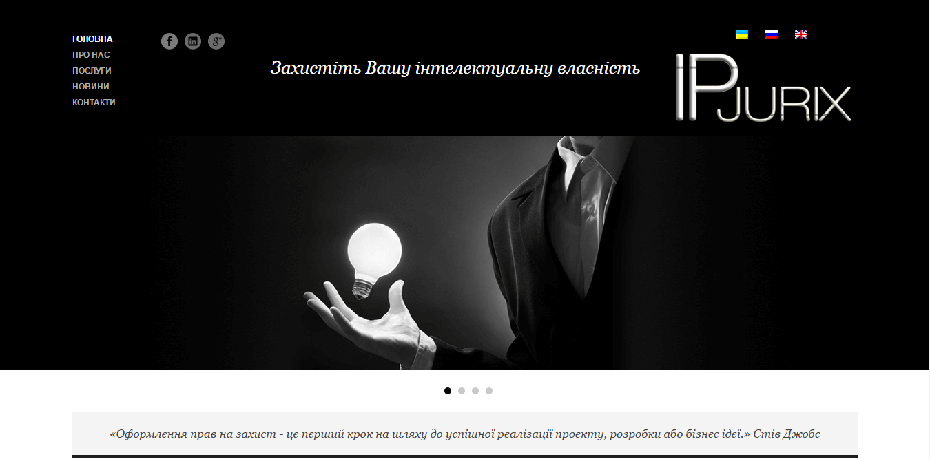 У початку 2014 року з нами зв'язався власник IPjurix і поставив завдання - зробити іміджевий сайт, залучити більше клієнтів. Так як споживачі приходили offline і з напрацьованою бази....