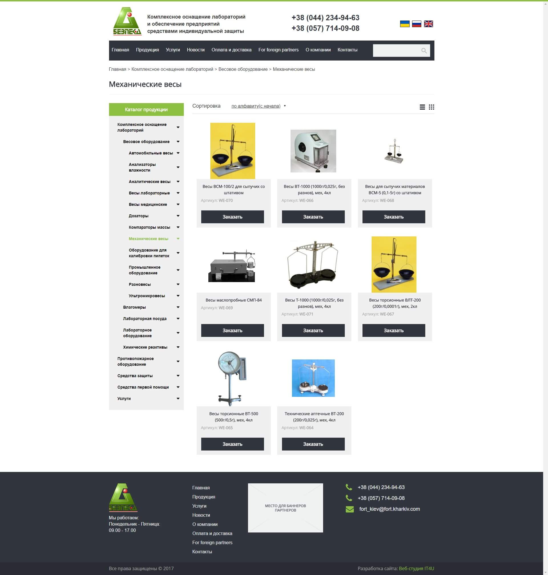 Cайт-каталог для компанії з продажу лабораторного обладнання "Безпека"