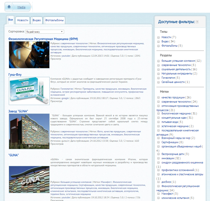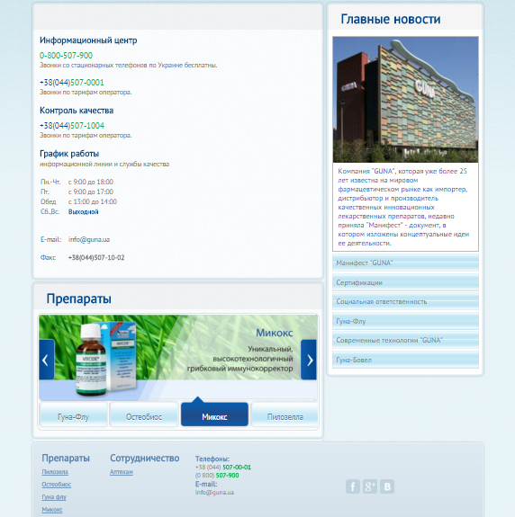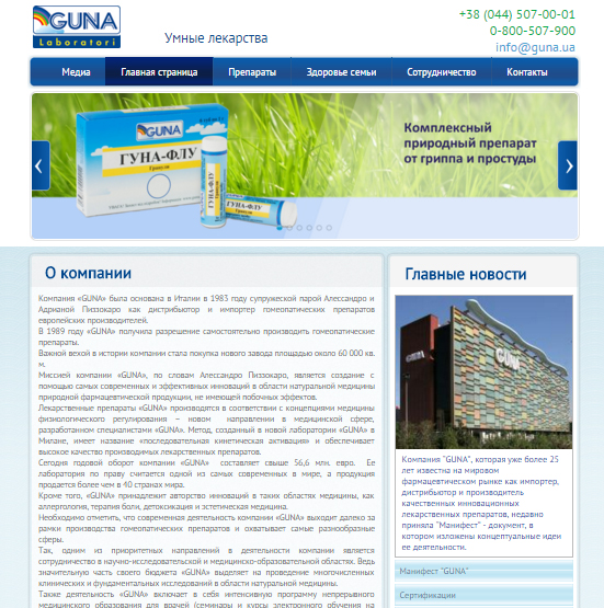 Корпоративний сайт фармацевтичної компанії Гуна Україна
