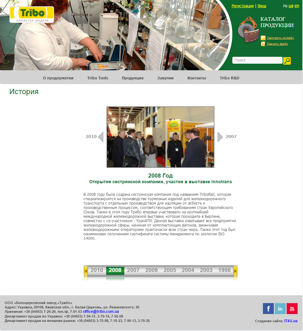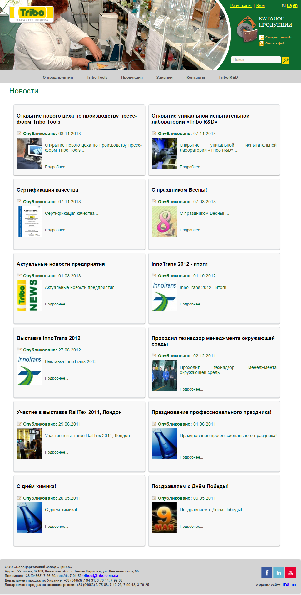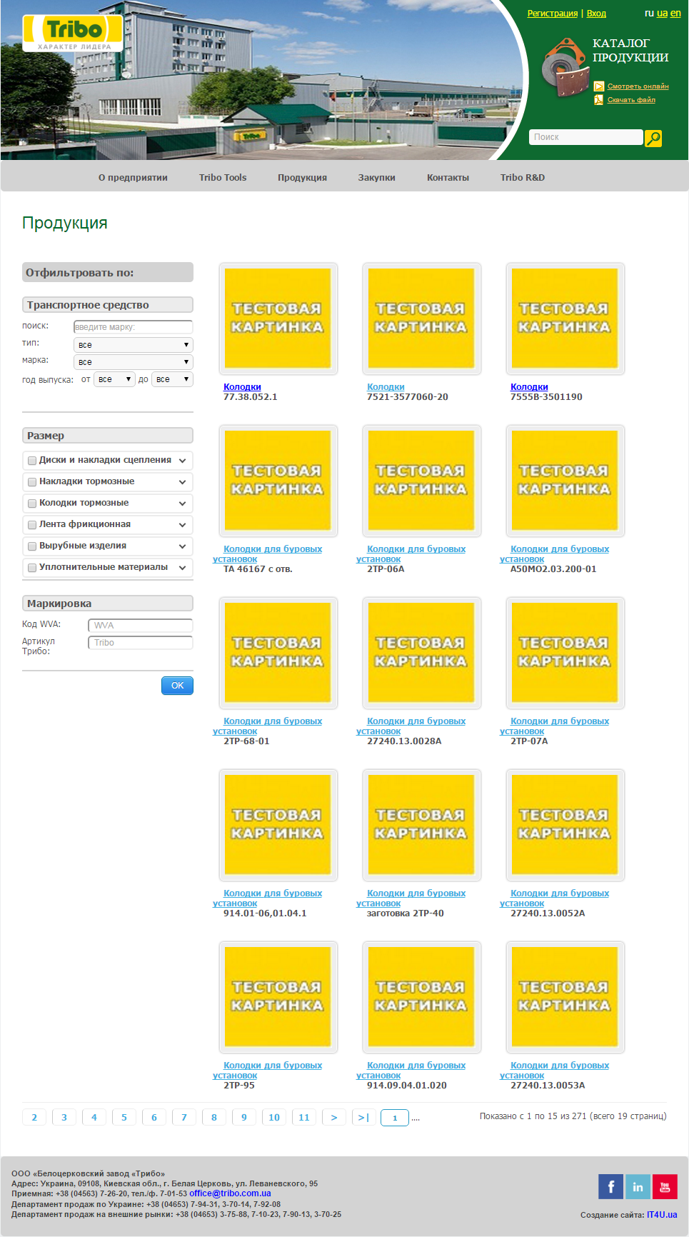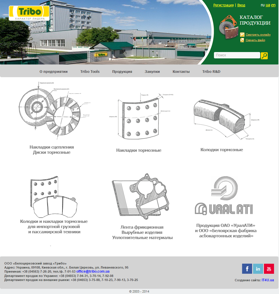 Корпоративний сайт виробника гальмівних колодок ТОВ "Трібо"