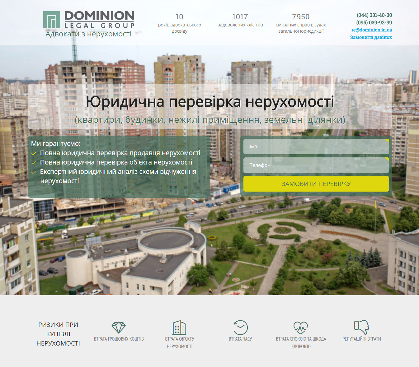Лендінгем для послуги "Аудит нерухомості" правової групи Dominion