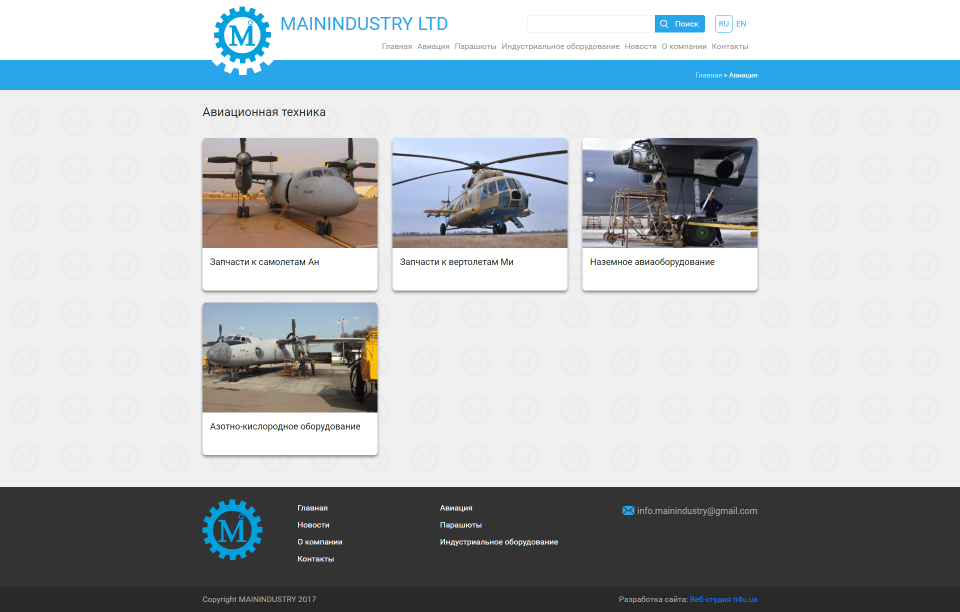 Проектування і розробка сайту для компанії з продажу авіаційного та індустріального обладнання, а також запчастин до нього.