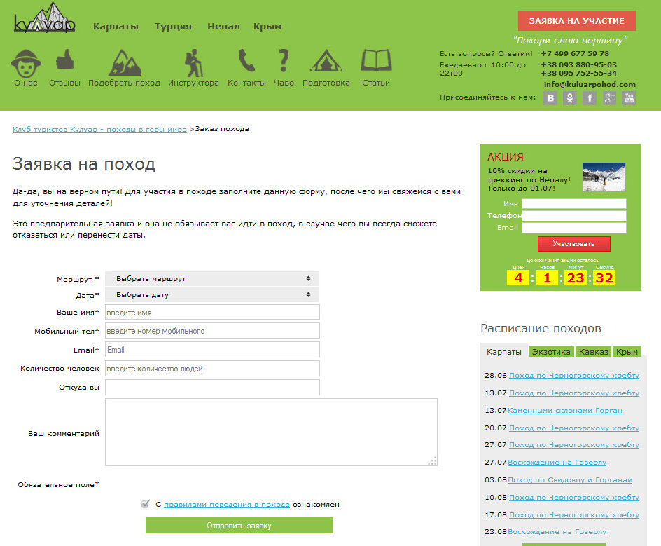 сайт обробляє десятки замовлень на походи щодня