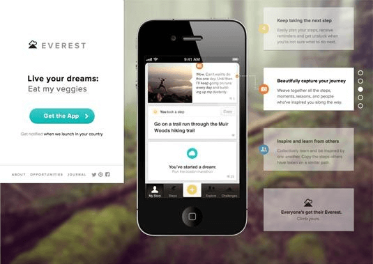 На странице Everest можно увидеть императивы и короткие слова. Следует обратить внимание на две кнопки СТА, их текст выглядит влиятельно и убедительно, что способствует повышению конверсии.