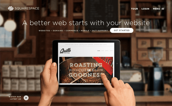 Squarespace на своей целевой странице размещает крупные изображения и это выглядит убедительно.\