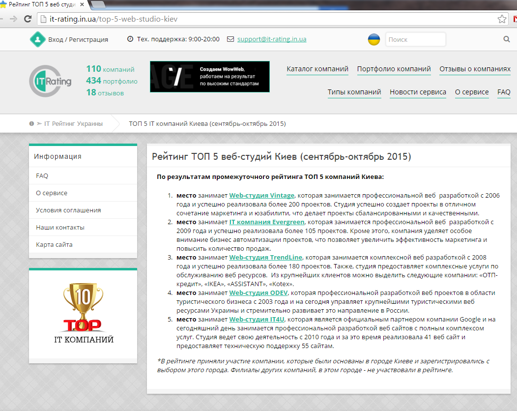 По одному из рейтингов — мы в 5-ке лучших веб-студий Киева https://it-rating.in.ua/ top-5-web-studio-kiev 😉
