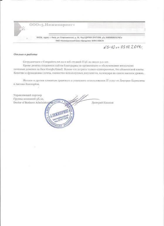 Управляющий партнер Группы компаний 5Х.uaСотрудничаем с Computers.net.ua и веб-студией IT4U.ua около 3-х лет.