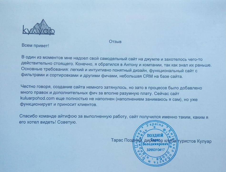 Отзыв Тараса Позднего о работе с веб студией IT4U